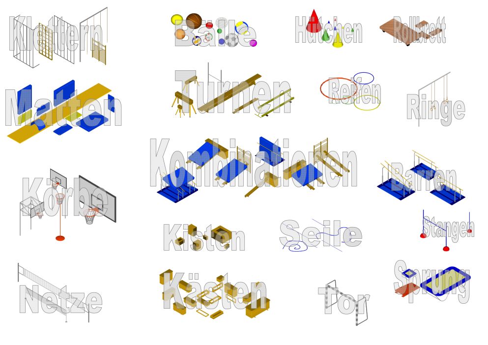 Inhalt: Männchen + Geräte + Hallenböden + Startdokument + Bedienungsanleitung